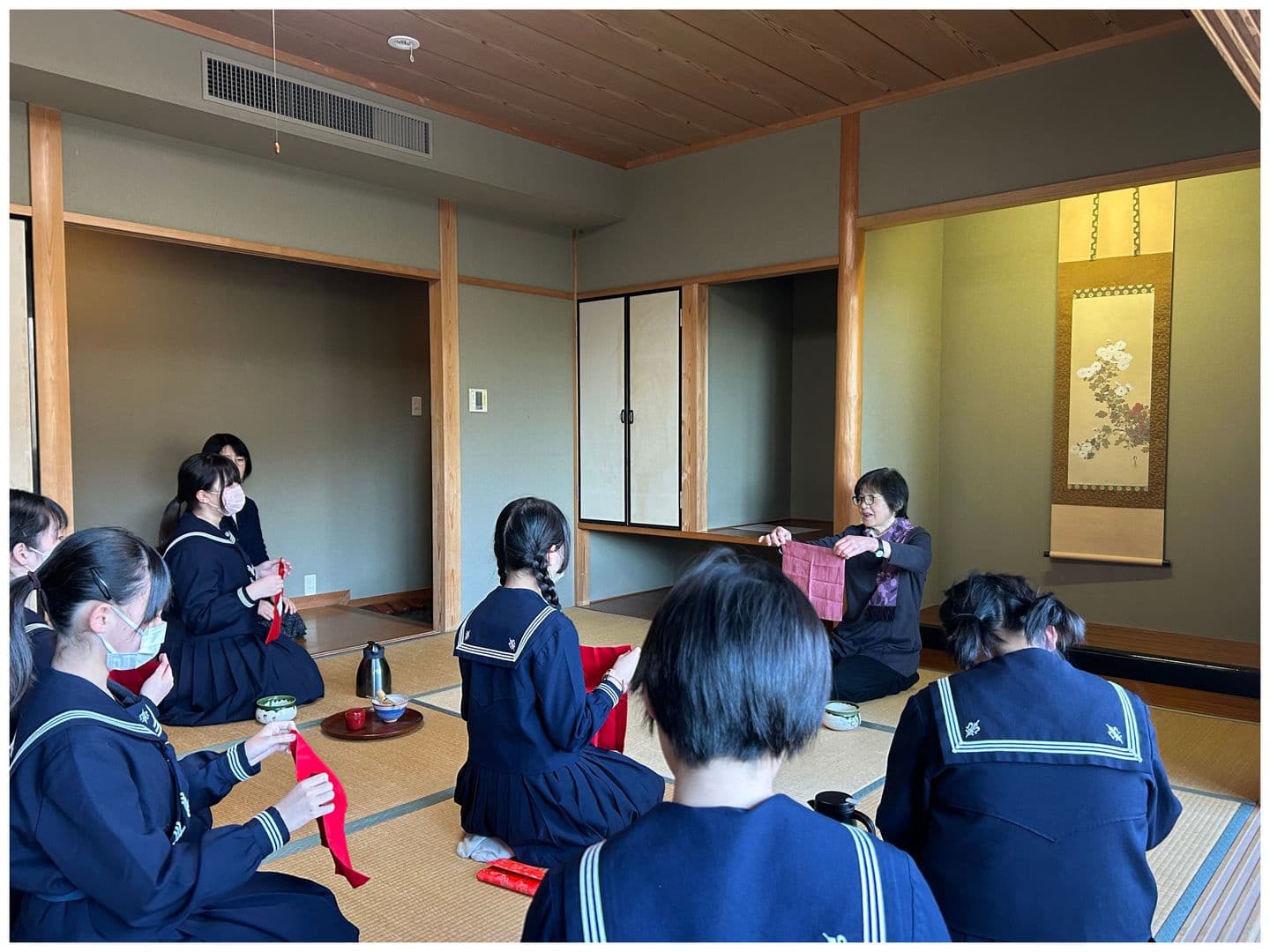 茶道具の扱い方、茶会でのお点前など、中学3年間にわたり基礎から深めていきます。