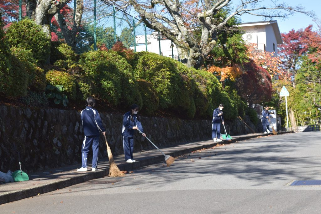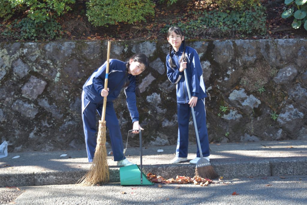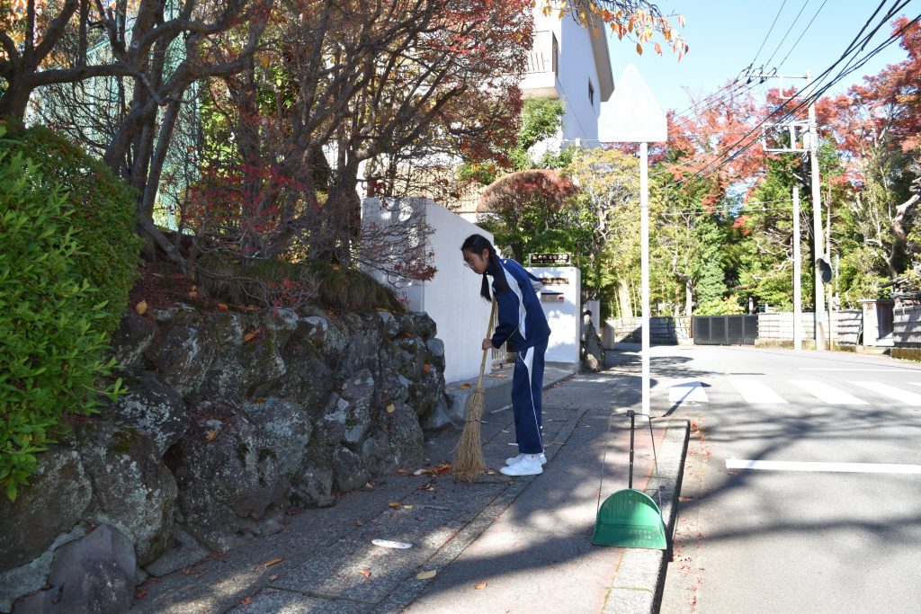 今日は、わたくしたちの通学路の落ち葉掃きをし、町のボランティアをしてきました。
