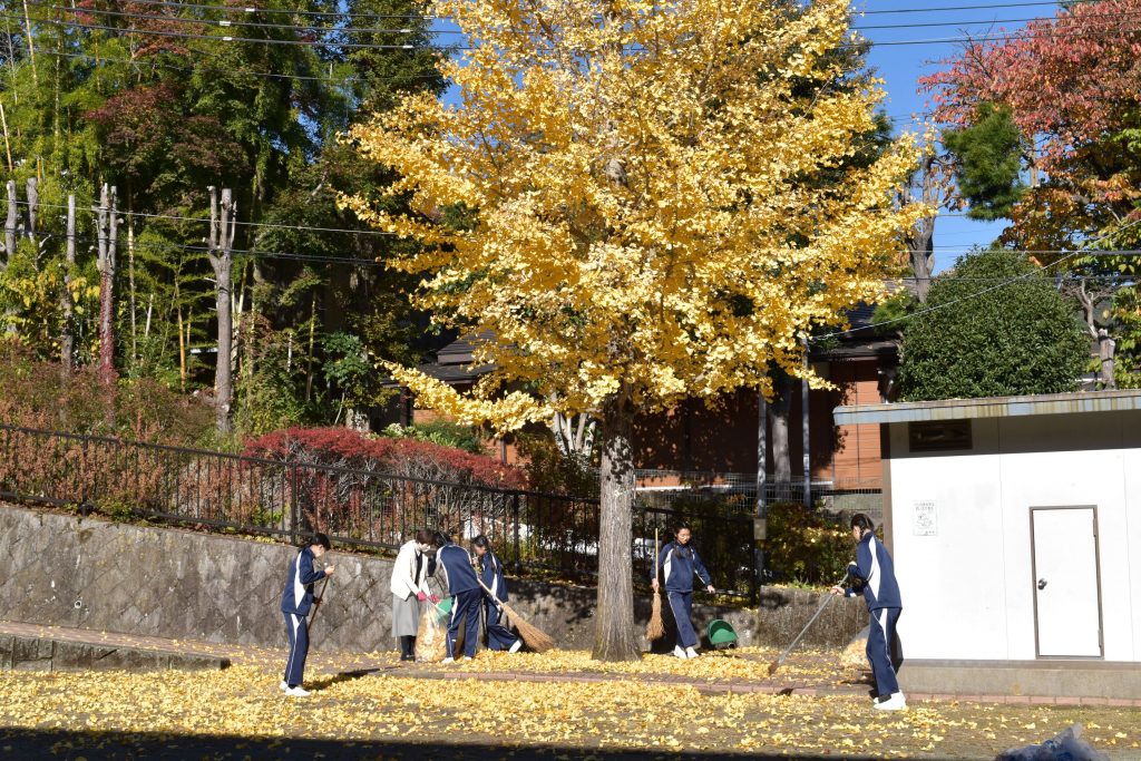 秋が深まり、学校の周りには落ち葉がたくさん落ちています。