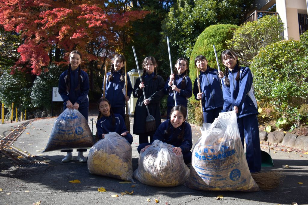 葉っぱは掃いても掃いても減らず、とても大変でしたが、その分終わった後、達成感に満ち溢れていました。集めた落ち葉はごみ袋何袋にもなりました。